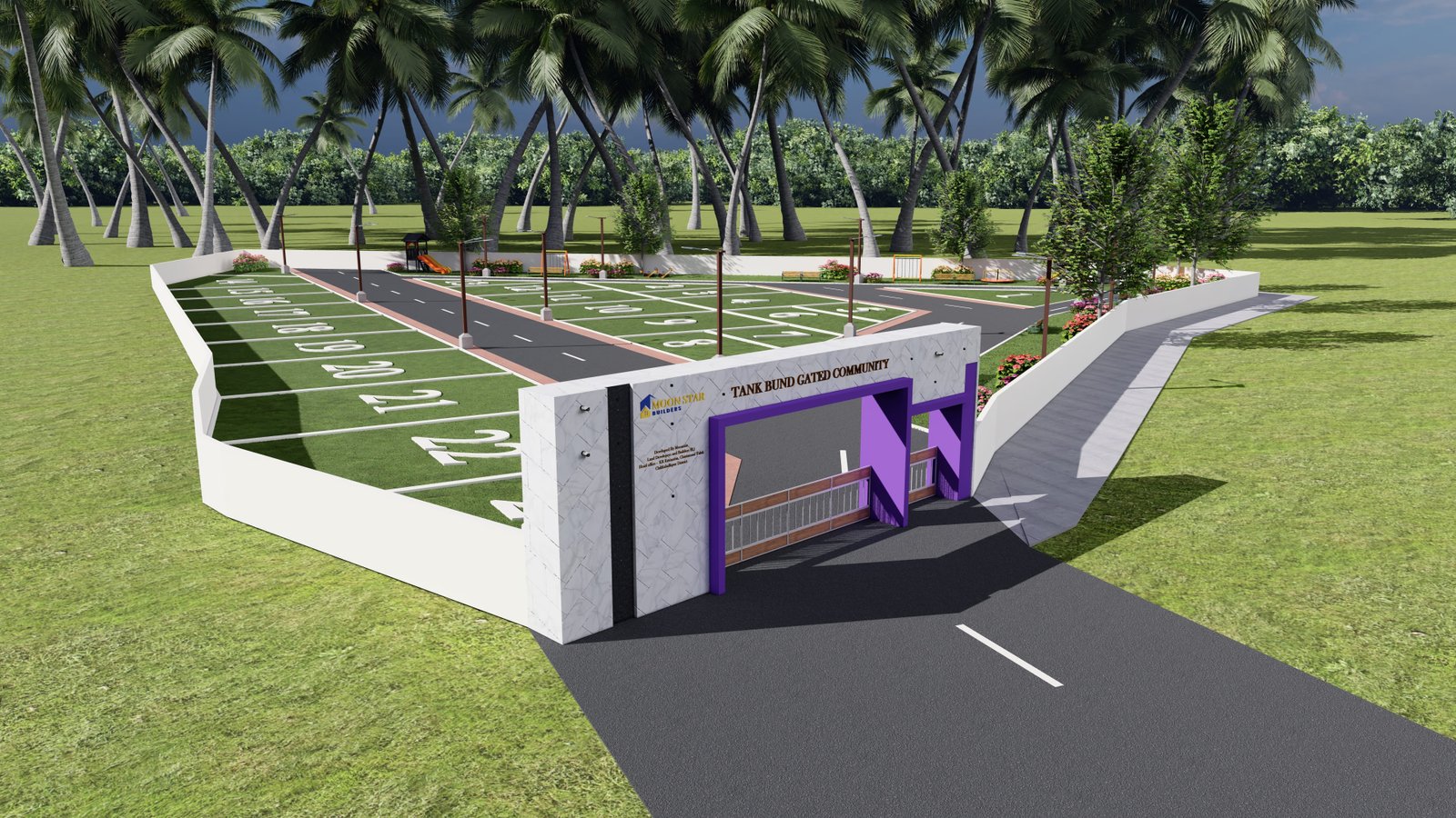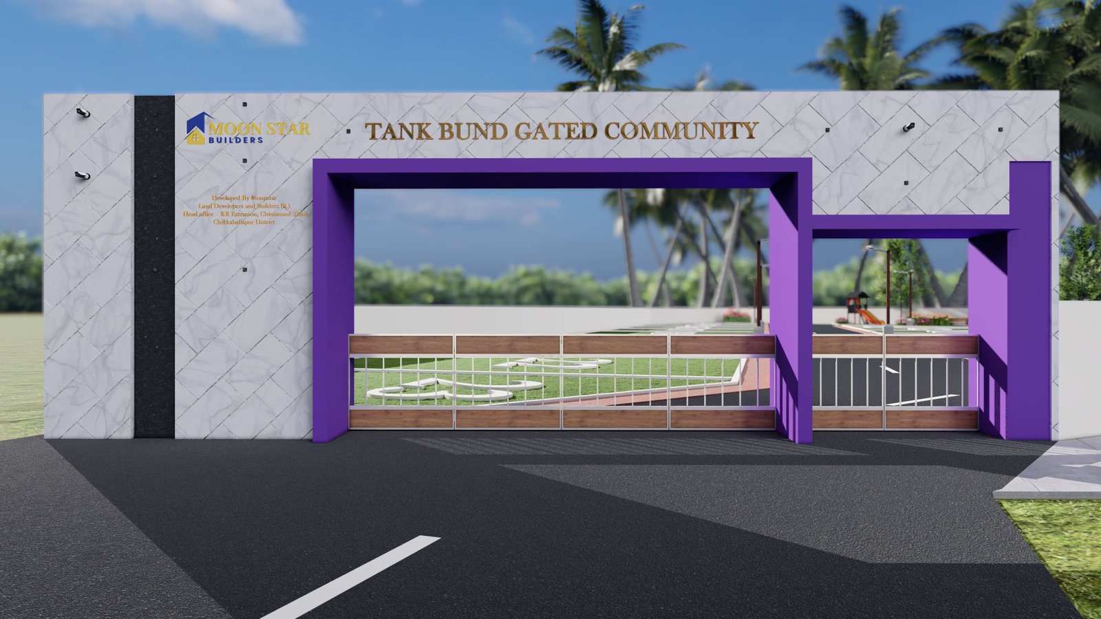 Chintamani, Karnataka - 563125Tank Bund Gated Community is a layout located in the center of Chintamani town. It is developed by Moonstar Builders under the chairmanship of Mr. Ghouse Pasha. The community offers several amenities: